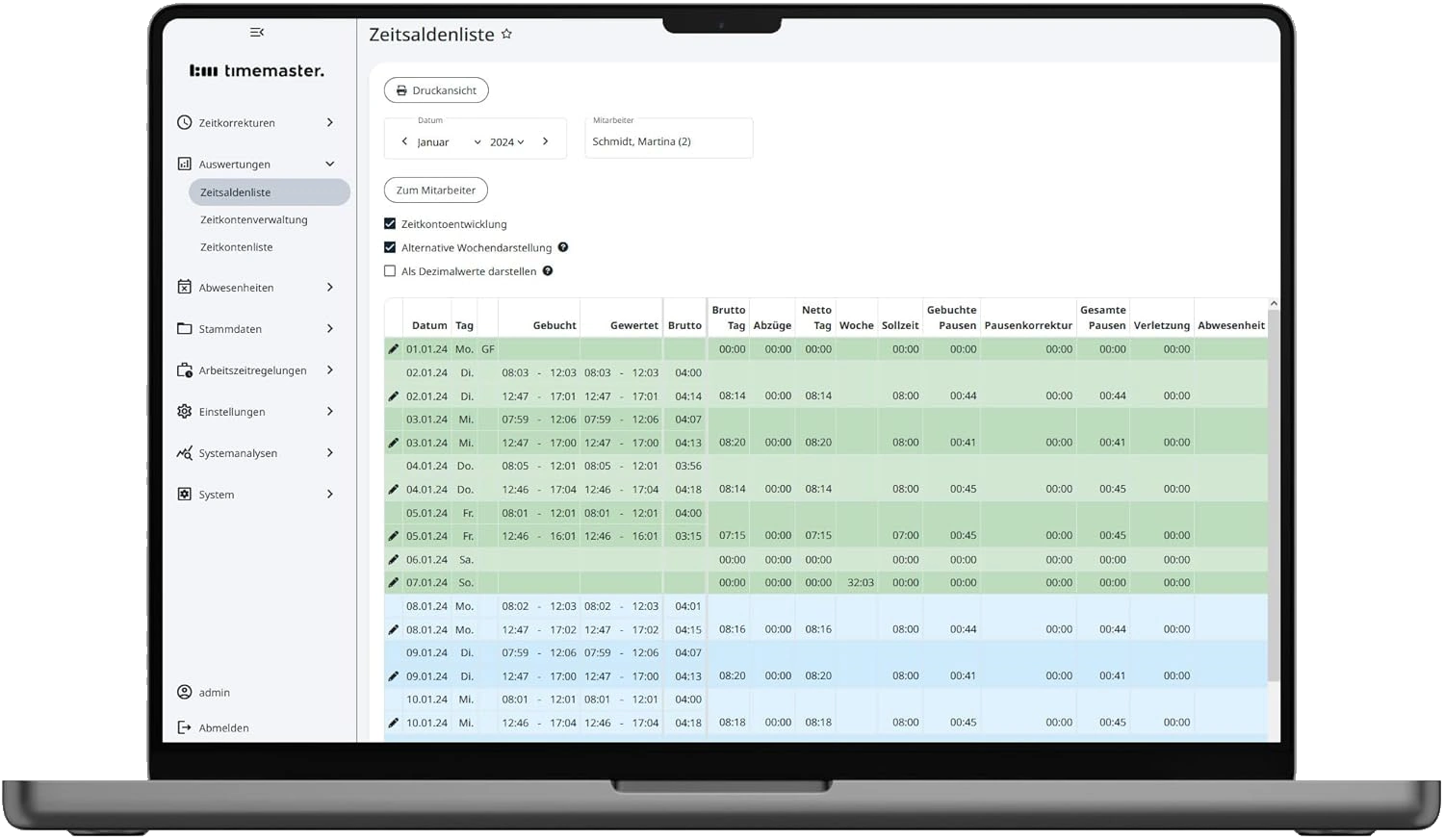 Mit unserer Zeiterfassungssoftware behalten Sie den Überblick über die Arbeitszeiten Ihrer Mitarbeitenden. Erleichtern Sie die tägliche Zeiterfassung durch