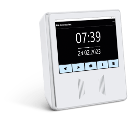 Das Erfassungsterminal plus7 verfügt über ein zeitloses, modernes Gehäuse in weiß. Es ist mit einem aktuellen Farb-Touch-Display ausgestattet. Ihre Mitarbeiter buchen Arbeitsbeginn und -ende sowie die Pausen berührungslos mittels eines Schlüsselanhängers oder einer Transponderkarte. Die Buchungen werden mittels einer Bestätigungsanzeige sowie einem akustischen Ton bestätigt. Die Verarbeitung, Bewertung und Speicherung der gesamten Daten erfolgt anschließend in der Timemaster Software.